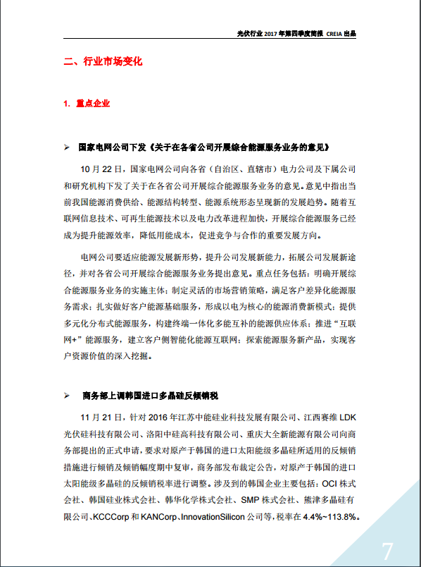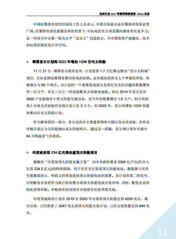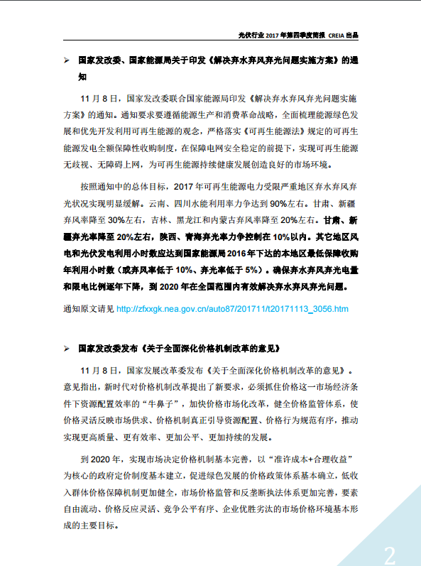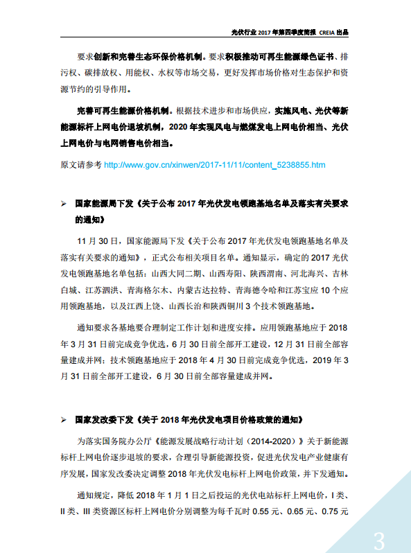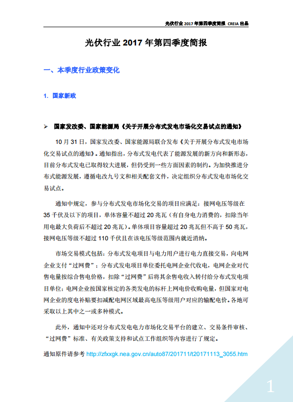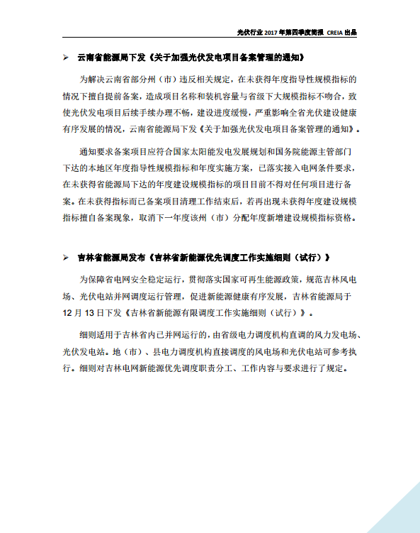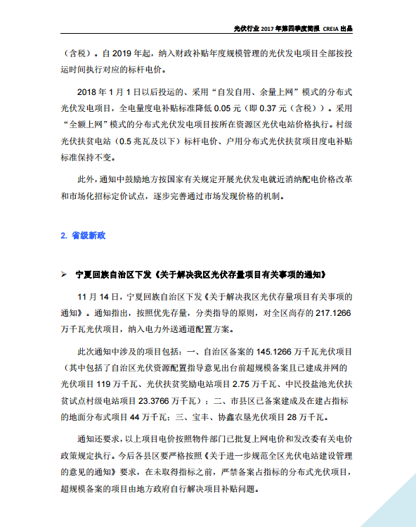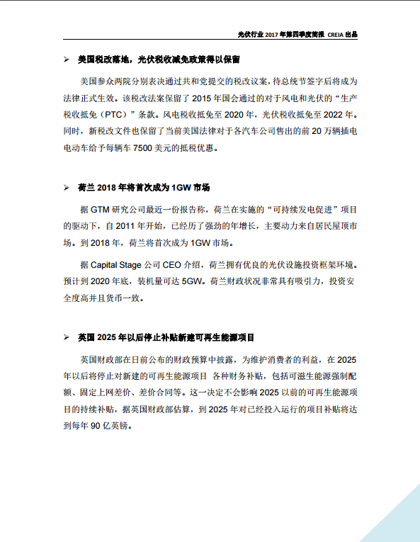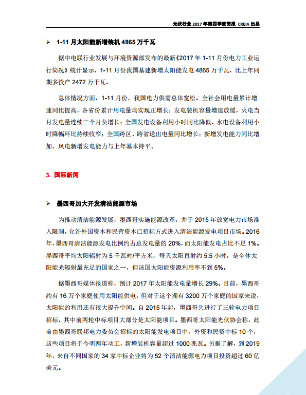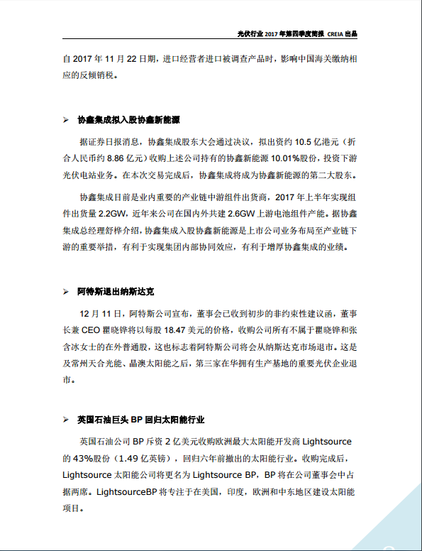光伏行(xíng)業2017年第四季度簡報