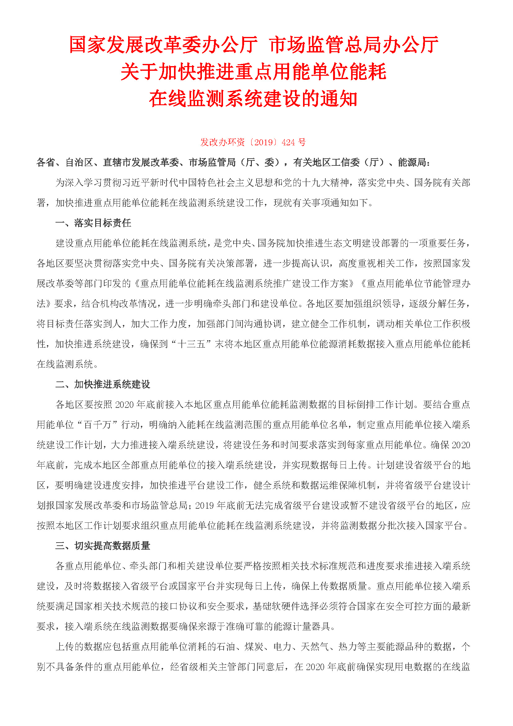 關于加快推進重點用能單位能耗在線監測系統建設的通(tōng)知